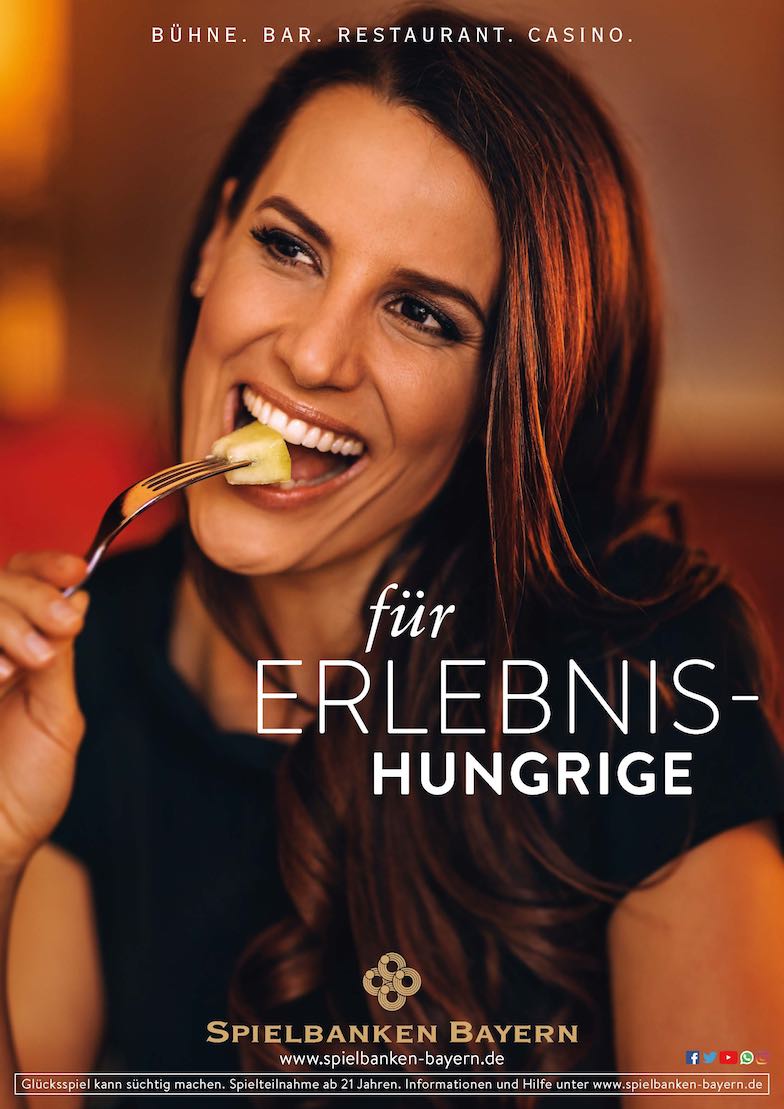 Im Lauf der Jahre wurden zahlreiche weitere Motive entwickelt, die als Plakate, Anzeigen und im Web eingesetzt werden. Darüber hinaus konzipierte ich flankierende Kampagnen, Kino- und Radiospots und textete Hausfolder, Eventkalender sowie andere Printmaterialien für alle neun bayerischen Spielbanken.