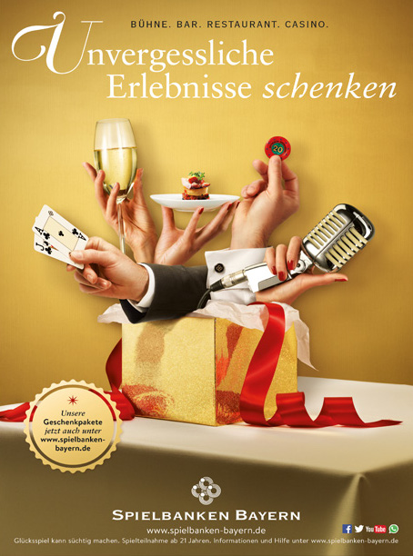 Im Zentrum der Strategie der Spielbanken Bayern steht der Claim „Bühne. Bar. Restaurant. Casino.“ und somit das Gesamterlebnis des Spielbankenbesuches. Die von mir und der Agentur Network! entwickelten Imagemotive zeigen emotionale Casino-Situationen, die von dem renommierten Fotografen Christopher Thomas in der Spielbank Bad Wiessee inszeniert wurden.